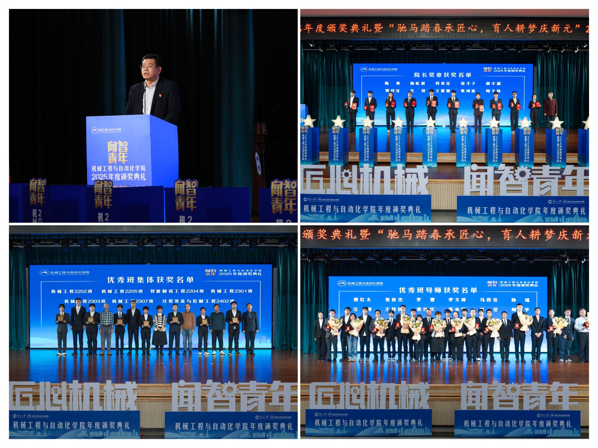 学院党委郝建山正在致辞中系统回首了一年来学院取得的主要成绩。学院积极办事国度计谋,投身深度金属矿智能开采纳配备全国沉点尝试室扶植,并正在环节科研范畴实现标记性冲破,获得国度严沉专项支撑。同时,学院成功引进增材取激光制制范畴领军团队,稳步推进学校新增学位点扶植,为久远成长奠基根本。正在人才培育方面,学院学子表示凸起,研究生学术丰盛,正在“挑和杯”“中国国际大学生立异大赛”等多项赛事中斩获国度级项,展示了全面成长的优良素养。郝建山阐释了“闻智青年”品牌的育人内涵,勉励全体师生胸怀“国之大者”,将小我成长融入“制制强国”计谋,过硬本事,怯于立异创制,勤奋成为担任平易近族回复大任的时代新人。副院长罗忠表扬决定。颁环节分三轮顺次进行。起首颁布的是“院长章”,刘云飞为毛羽等10名正在专业进修、科技立异、社会实践等方面表示杰出的学生颁布章。随后颁布“优良班集体”项,班导师代表为7个正在班风、学风及凝结力扶植中成效显著的班级颁。最初,仪式聚焦育人一线论理学生代表向获评“优良班导师”的教员们献上鲜花取荣誉证书,表达诚挚感谢感动。“院长章”获得者代表毛羽连系科研竞赛取意愿办事履历,讲述了“道阻且长,行则将至”的成长;“优良班集体”获代表豆煜轩分享了班级凝心聚力、共建优秀学风的活泼经验。正在“闻智匠心 共话青蓝”出格环节,优良班导师马哲伦取所带班级学生代表刘定佳同台交换,从分歧视角展示了师生间思惟引领、学业互帮、讲授相长的温情互动,彰显了育人一线的深挚交谊取结实成效。据悉,“闻智青年”是机械工程取从动化学院出力打制的文化育人品牌。本次颁仪式既是年度的集中展现,也是典型树立、激励朝上进步的主要平台,旨正在指导全体学生以先辈为楷模,坚想、锻制立异能力,勤奋成长为具有家国情怀、全球视野取创制活力的杰出工程人才,为学校“双一流”扶植和高质量成长注入芳华力量。